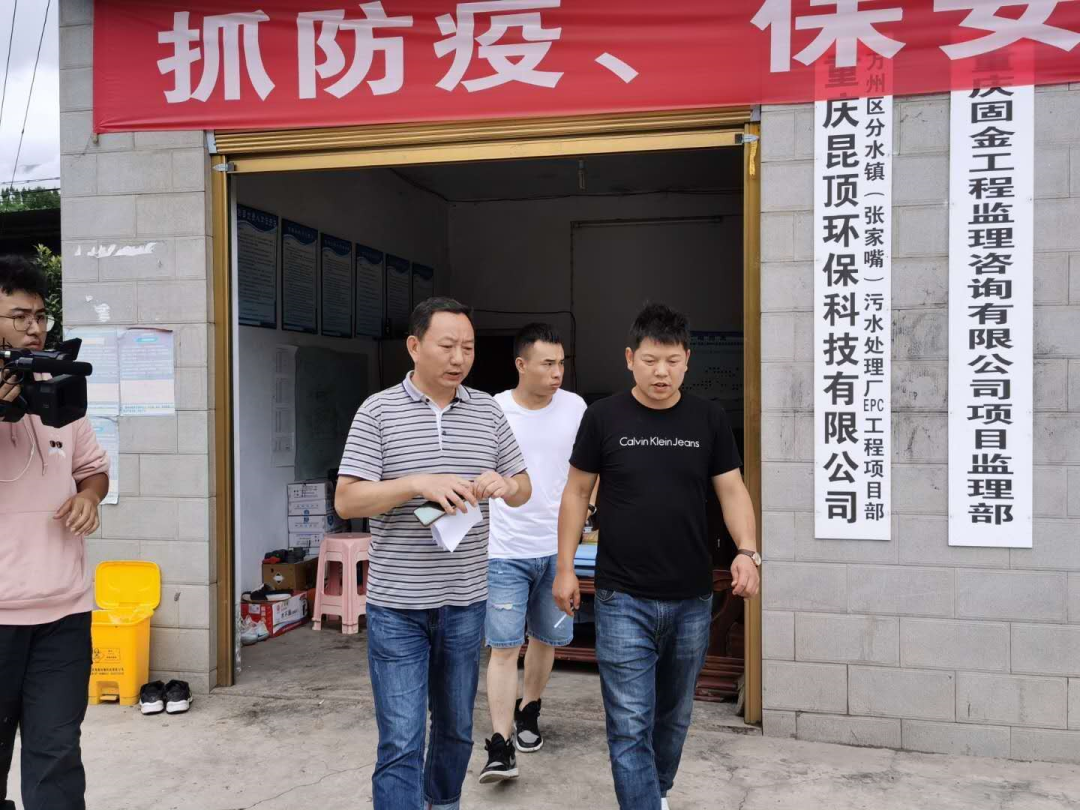 2020年6月12日,重慶市生態(tài)環(huán)境局督察處劉洪輝處長一行到昆頂環(huán)保萬州分水鎮(zhèn)(張家嘴)污水處理廠EPC工程項目檢查指導(dǎo)工作。劉洪輝一行在我公司項目部經(jīng)理張帆的介紹下,聽取了安全文明施工、質(zhì)量管控、項目施工進度及施工重難點等情況匯報。通過實地檢查,市生態(tài)環(huán)境局領(lǐng)導(dǎo)更直觀、更全面的了解到公司項目的實際情況,并要求公司在完成工程進度的同時,更要嚴抓安全生產(chǎn)質(zhì)量,全力以赴推進施工進程。