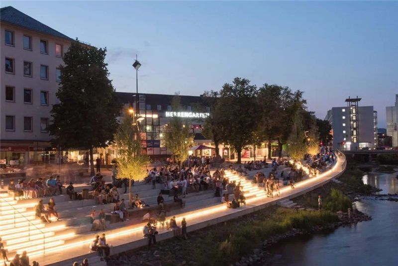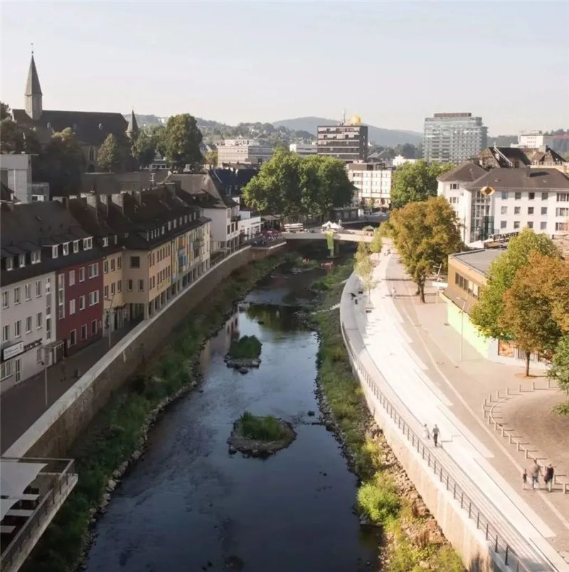 隨著河流的復(fù)興,180米長的新“Siegtreppen”,重新設(shè)計進(jìn)一步的廣場,長廊和橋梁在附近的勝利贏得了Siegen它的城市中心在河背上。 清晰可讀和慷慨的自由空間結(jié)合了居民對城市生活和“綠色”娛樂的多方面要求,與水元素直接接觸。