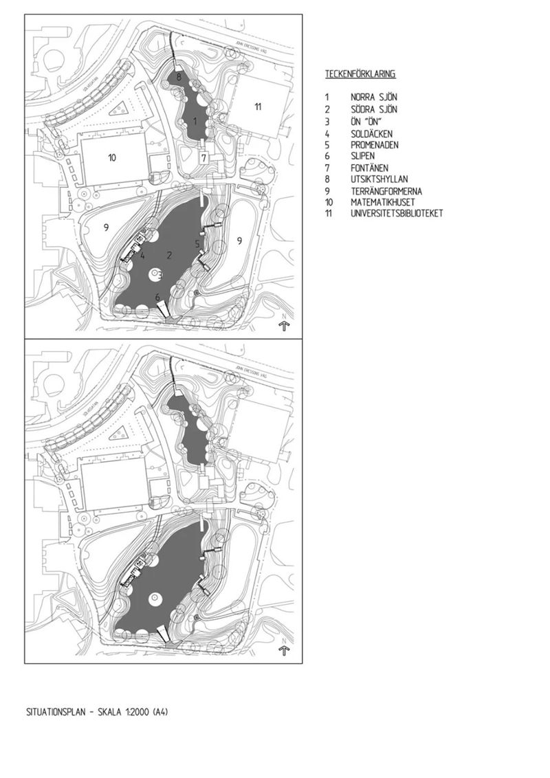 這個校園景觀項目便是針對如何補(bǔ)救上述缺點(diǎn)的一個解決方案,這塊場地相當(dāng)?shù)碾[蔽,而且風(fēng)還很大,不過有一個部分是突出的:兩個池塘周圍的區(qū)域。這塊區(qū)域原來是一個舊的粘土采石場,以前用來供應(yīng)制磚原料,粘土坑是地下的深井,如今已充滿了水。與周圍開闊、傾斜的地面相比,這里有著引人注目的背景環(huán)境:在邊緣處有一個急劇的下降,近乎垂直。這里的氣候不同于校園的其他地方,茂盛的植被可以抵御風(fēng)的吹拂,濱水的特點(diǎn)同時優(yōu)化了場地質(zhì)量,這應(yīng)該是學(xué)校發(fā)展新社交中心的一個良好開端,多年來它一直缺乏這種社交屬性。