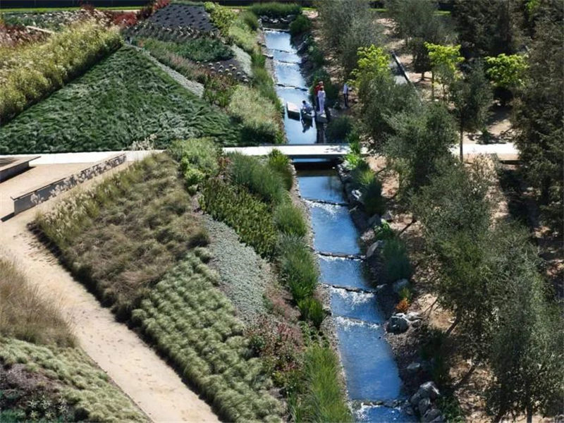 該項目是對一個中心公園的建造。該公園位于Howard Hughes航空公司之前所在的位置,該公園是美國洛杉磯區(qū)域所要求的最后一個發(fā)展項目。設(shè)計團(tuán)隊在項目開始之前,就場地的條件和地理位置做了一個仔細(xì)的討論預(yù)調(diào)查,他們決定將該公園構(gòu)造成一個公共藝術(shù)裝置的形象,希望能夠通過一系列不同種類的景觀排列帶給游客們獨(dú)特的體驗與感受。