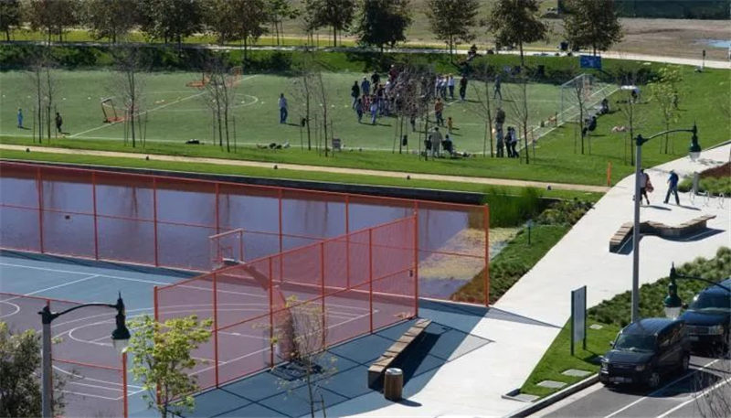 該中心公園面積大約為9英畝,其中的公共區(qū)域也是應(yīng)有盡有,包括幾個小型的運(yùn)動場,游樂園,足球場,幾個植物小花園,水景和一個殼形的演奏臺。完工后的公園已然成為了該社區(qū)的焦點(diǎn),人們喜歡茶余飯后來到這里散步閑談,仔細(xì)品味公園的藝術(shù)美和享受生活的樂趣。而且,設(shè)計團(tuán)隊十分注重人造景觀與自然景觀的和諧,每個區(qū)域都可以直觀的看到美麗的自然環(huán)境。