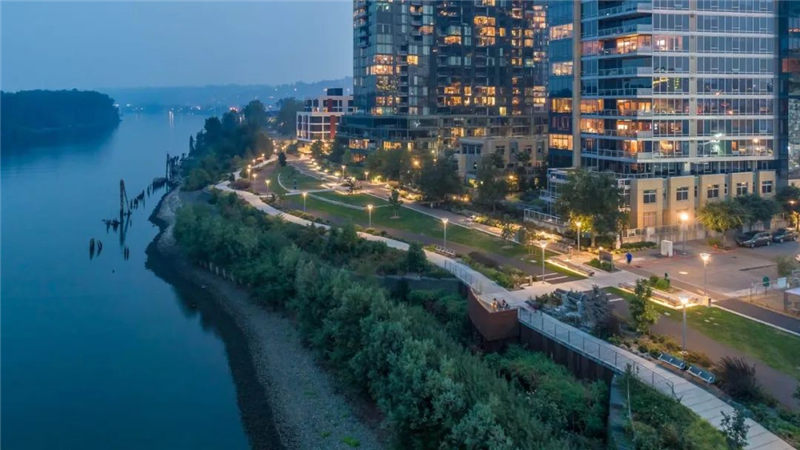 該公園變革性的影響在于其生態(tài)可持續(xù)性所激發(fā)的社會可持續(xù)性與社會公正。沿河岸而建的數(shù)條步道將周邊的社區(qū)與這片活力四射的景觀串聯(lián)為一體,這也是近百年來首次將河流的邊緣向群眾開放。