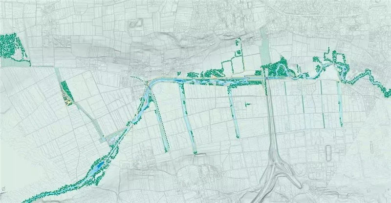 在整個流域、原有的山丘形態(tài)和人為改造的痕跡中,這條狹長的河畔花園將這些場面、視野、沖突等構(gòu)成一場真實(shí)版愛森斯坦式“蒙太奇”。舊運(yùn)河留存的痕跡使得新的設(shè)計情景之中飽含復(fù)雜的時間性,有著十分遙遠(yuǎn)又非?,F(xiàn)代的奇異感。空間與時間的沖突之間充滿著記憶與希望。