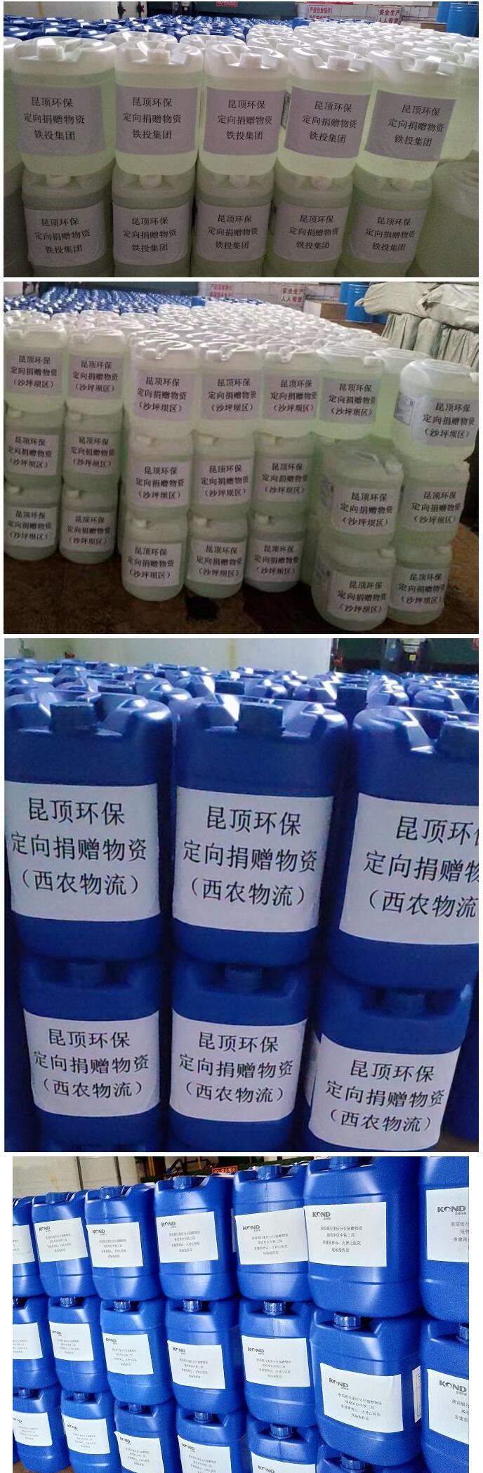 據(jù)了解,自肺炎疫情發(fā)生以來(lái),多地區(qū)疫情防控物品出現(xiàn)緊缺情況,為緩解當(dāng)前困難,昆頂環(huán)保向各區(qū)人民政府、各區(qū)生態(tài)環(huán)境局、各企業(yè)捐贈(zèng)了消毒防護(hù)物資。并聯(lián)合浙商銀行重慶分行向參建火神山雷神山醫(yī)院的中鐵二局現(xiàn)場(chǎng)指揮部捐贈(zèng)的消毒防護(hù)物資,今日已運(yùn)往武漢,用于保障現(xiàn)場(chǎng)建設(shè)工作人員的疾病防控安全。截至2月15日,昆頂環(huán)保已累計(jì)捐贈(zèng)300桶濃縮高純二氧化氯消毒液,可稀釋成750噸消毒液對(duì)環(huán)境噴灑消毒。